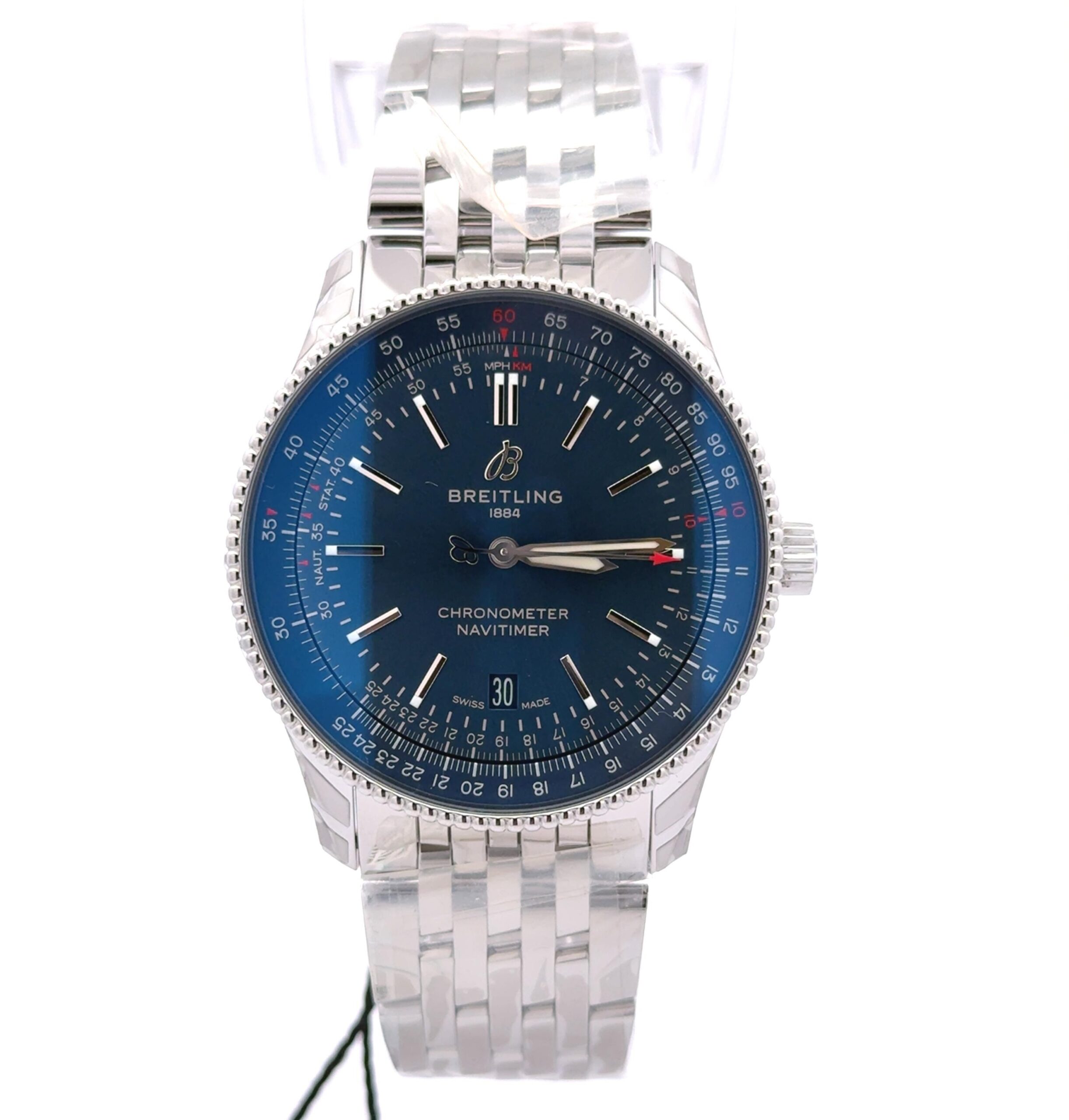 Breitling Navitimer Automatic 41 reference A17326161C1A1 is a refined evolution of an aviation icon, tailored for modern elegance while retaining its legendary heritage. Encased in polished stainless steel, it features a captivating blue dial accented with silver-toned hands and hour markers, all treated with luminescent coating for optimal legibility. The signature beaded bidirectional bezel frames the dial with a vintage touch, while the outer slide rule scale pays homage to the Navitimer’s flight-calculating roots. Its 41mm case strikes a perfect balance between presence and wearability, complemented by a sophisticated multi-link stainless steel bracelet. Powered by the COSC-certified Breitling Caliber 17, this automatic chronometer delivers reliable performance with a 38-hour power reserve. Ideal for those who appreciate timeless design infused with technical precision, the A17326161C1A1 is both a tribute to aviation history and a statement of contemporary style.
