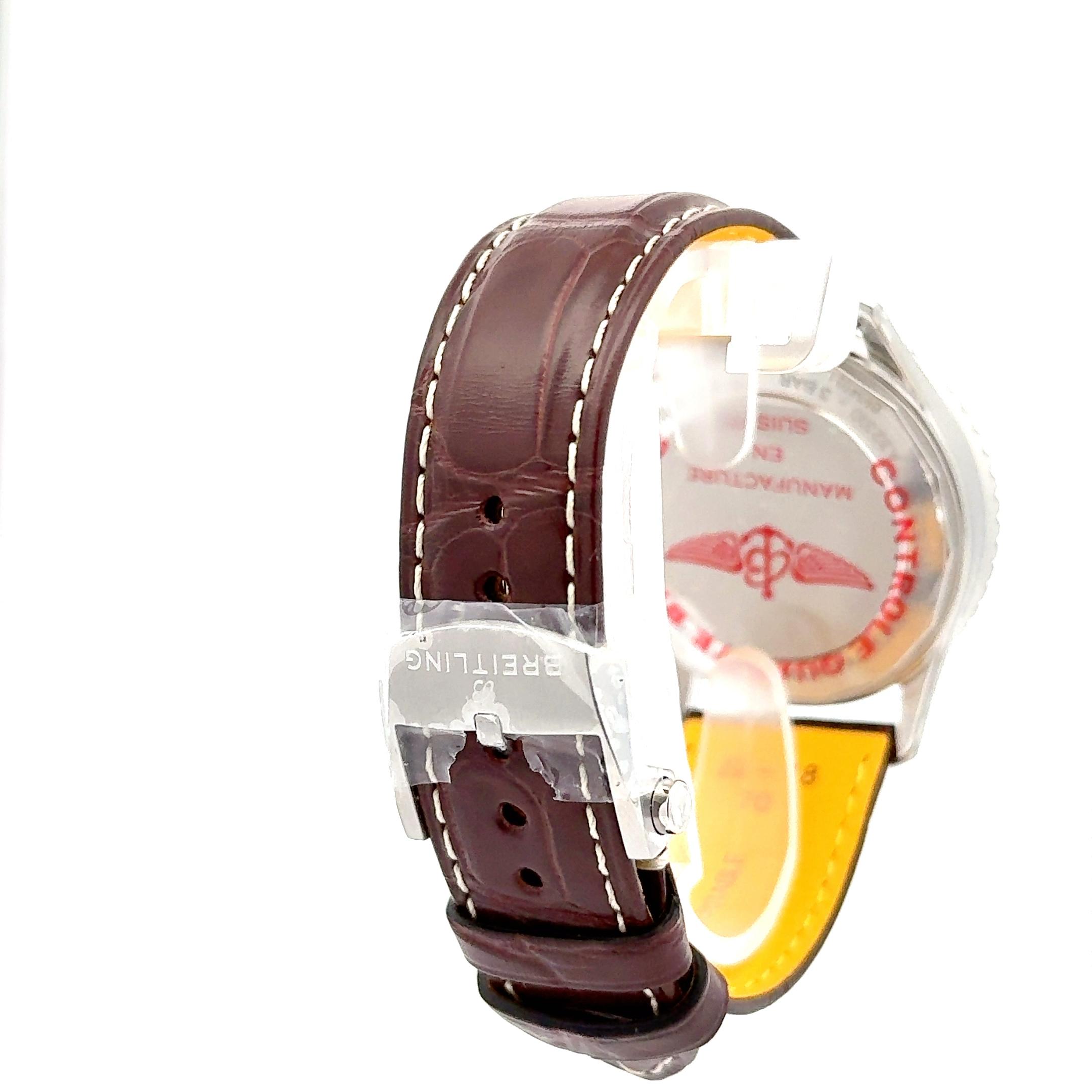 The Breitling Navitimer GMT A32310211G1P1, a refined timepiece from 2024, blends classic elegance with modern functionality. Encased in a 41mm steel frame with sapphire crystal and a striking silver dial, this watch is powered by an automatic movement with a 42-hour power reserve and 21 jewels for precision. Its brown crocodile skin strap, secured with a steel fold clasp, adds a touch of sophistication, while its GMT and date functions make it an ideal companion for global travelers who value both style and versatility.