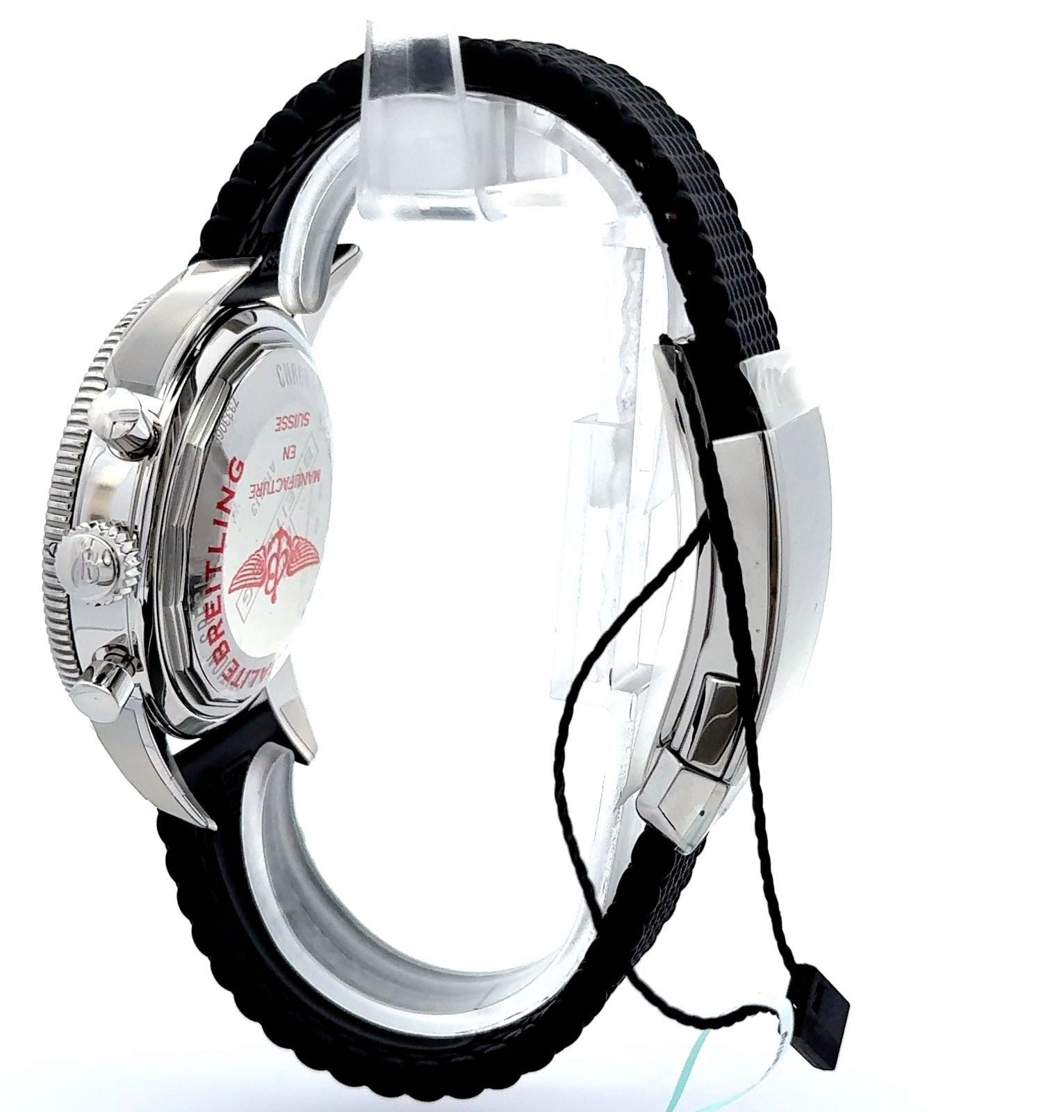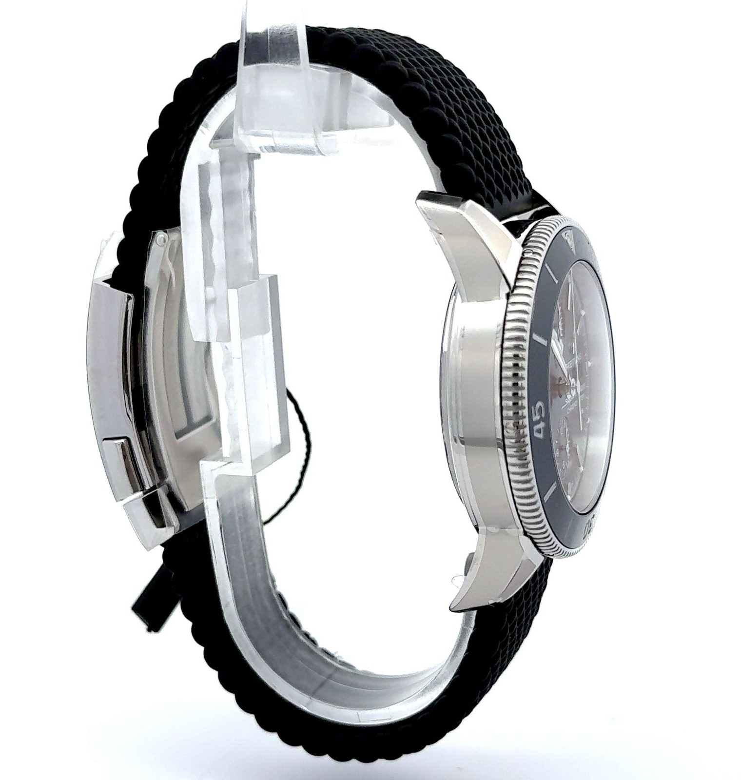 Breitling Superocean Heritage II Chronograph is where classic diving tradition meets modern innovation. Inspired by the iconic 1950s Superocean, this 44mm chronograph is built for those who demand precision, power, and timeless elegance.Crafted in stainless steel with a bold black dial, it houses the Breitling 13 automatic movement with a 48-hour power reserve. Functions include chronograph timing and date display, making it as practical as it is stylish. The black rubber strap with a steel folding clasp ensures comfort and durability, while 200m water resistance guarantees performance under pressure. From the depths of the sea to formal occasions, the Superocean Heritage II Chronograph stands as a versatile companion for the modern explorer.