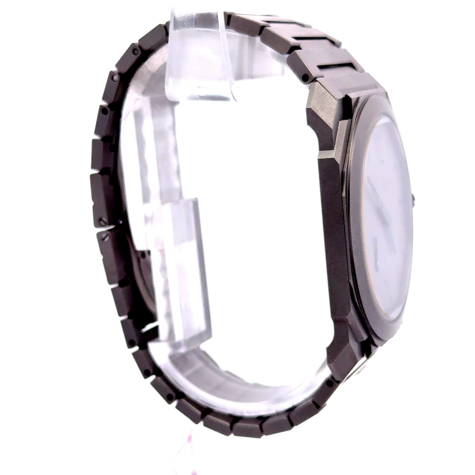 Bulgari Octo Finissimo 103023 is a striking fusion of architectural minimalism and cultural nuance, crafted in ultra-light titanium and distinguished by Eastern Arabic numerals on its dial. This Middle East Exclusive Edition features a 40mm sandblasted titanium case with an extra-thin profile of just 5.15mm, embodying Bulgari’s mastery of ultra-slim watchmaking. The matte grey titanium dial is adorned with green Eastern Arabic numerals, offering a refined nod to regional heritage while maintaining the Octo’s modernist aesthetic. Powered by the BVL 138 Finissimo caliber, a mechanical automatic movement with a platinum micro-rotor, the watch boasts a 60-hour power reserve and exquisite finishing, including Côtes de Genève, perlage, and chamfering