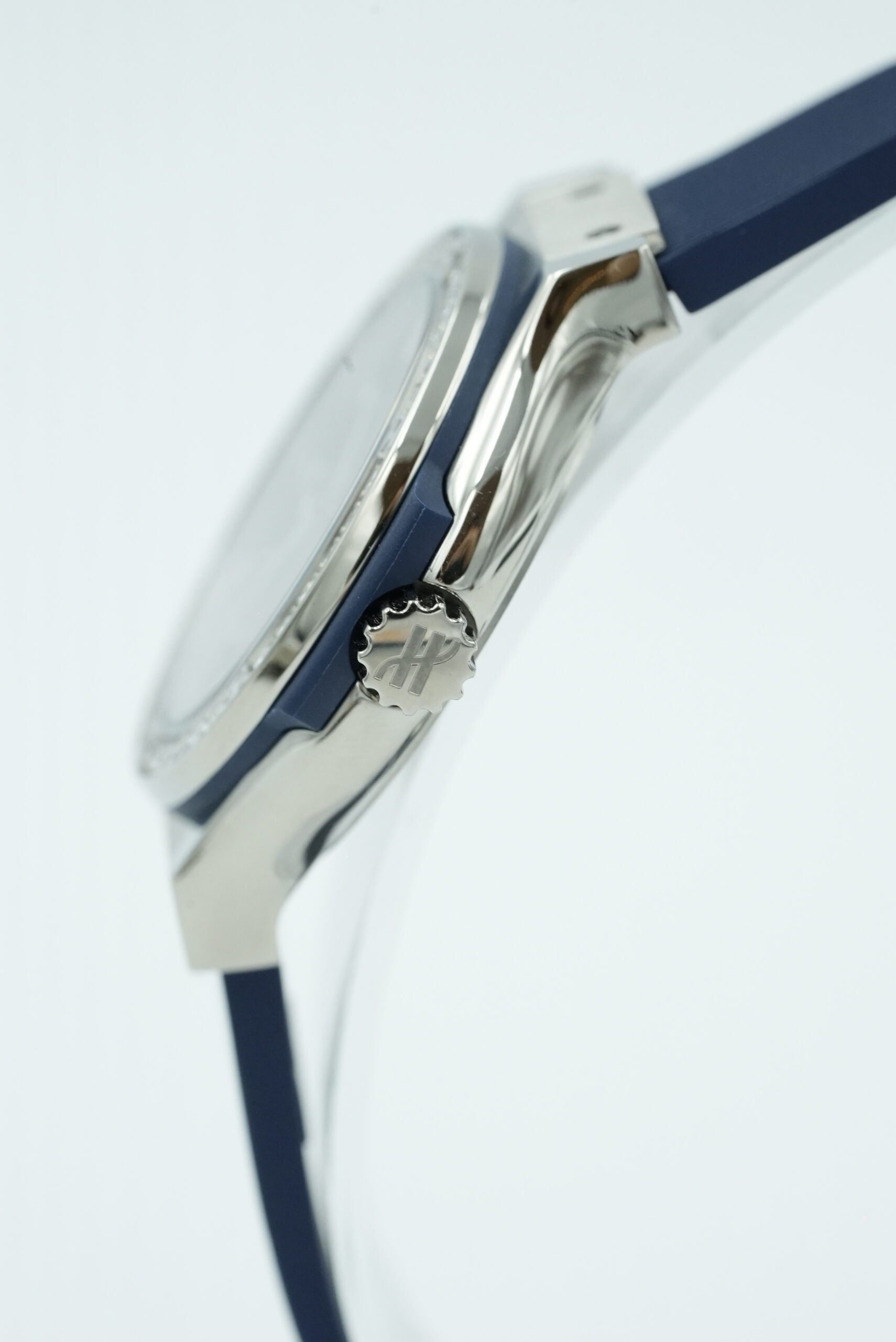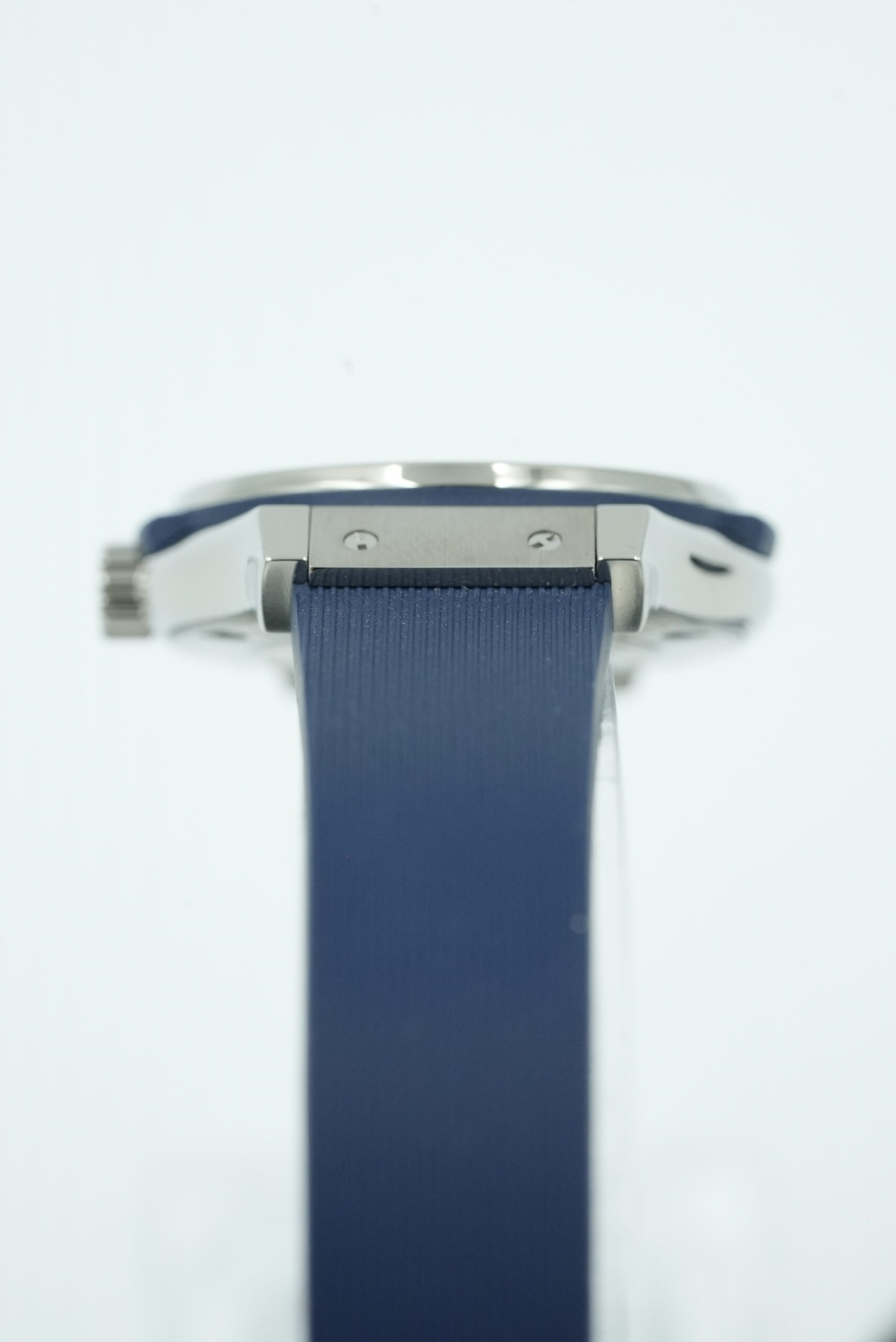 Hublot 581.NX.7170.RX.1104 is a stunning timepiece from Hublot’s renowned Big Bang collection, which is celebrated for its bold, modern designs and innovative materials. This particular model features a robust titanium case, combining lightness with exceptional durability, a hallmark of Hublot’s craftsmanship. The watch is paired with a blue rubber strap, providing a sporty and comfortable fit while maintaining the watch's stylish, contemporary appeal. The blue dial is designed with a clean, minimalist layout that includes a date display, offering both practicality and high performance. Powered by a HUB2912 quartz movement, the Hublot 581.NX.7170.RX.1104 delivers precise timekeeping and is a perfect fusion of technical sophistication and modern luxury. This watch is ideal for those who value craftsmanship, functionality, and a striking design that makes a statement on any occasion.
