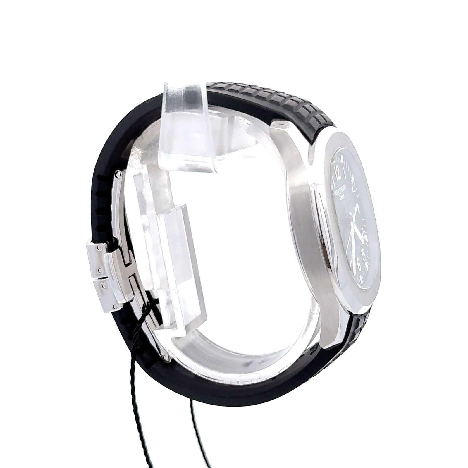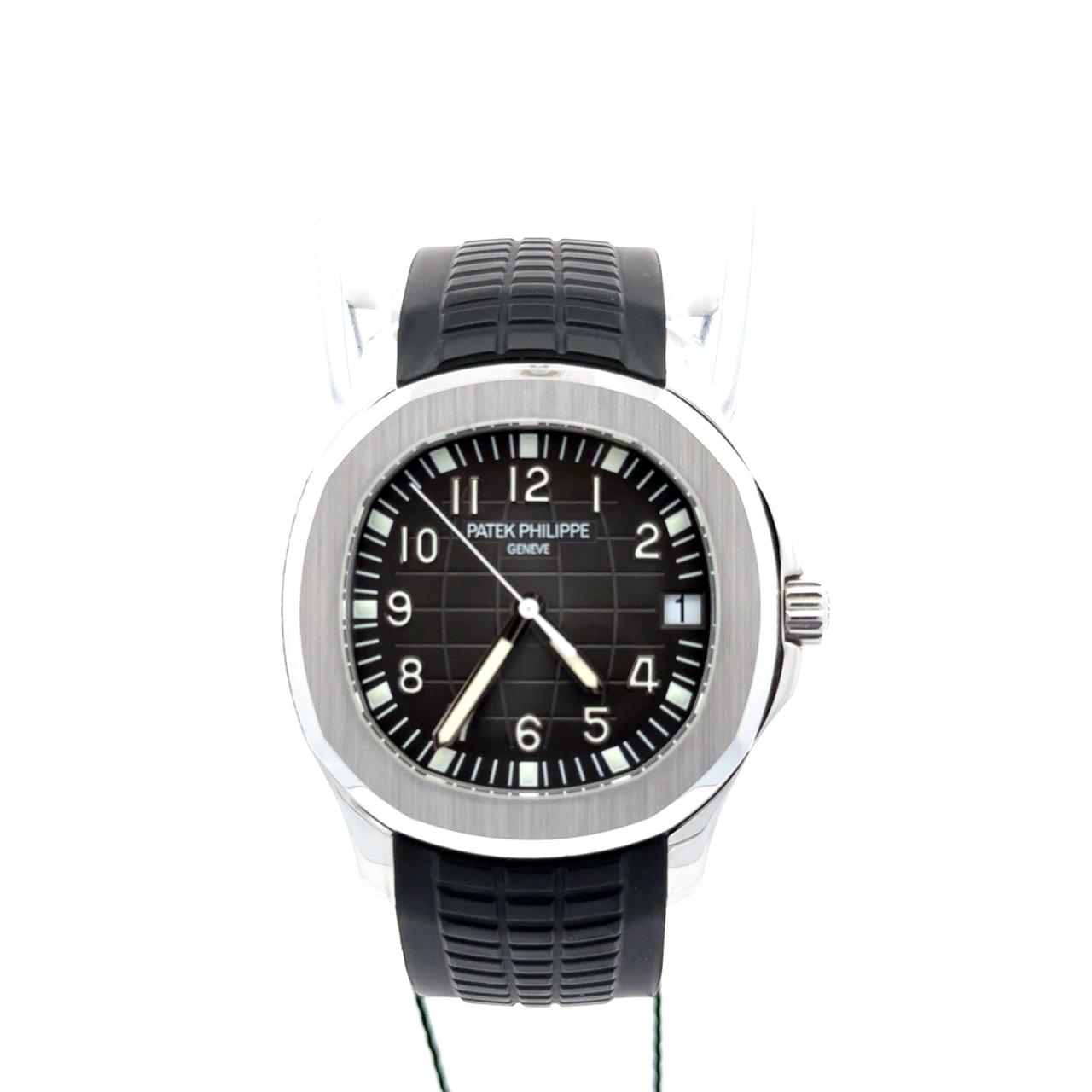Patek Philippe Aquanaut reference 5165A-001 is a refined expression of sporty elegance, tailored for those who appreciate understated luxury with contemporary flair. Encased in stainless steel, its 38mm rounded octagonal case offers a slightly more compact profile than its larger sibling, the 5167, making it ideal for slimmer wrists while retaining the collection’s signature silhouette. The embossed black dial features bold white Arabic numerals and luminous hands, ensuring legibility in all conditions. A date window at 3 o’clock adds practical functionality, while the sweep seconds hand provides dynamic movement. Powered by the self-winding caliber 324 SC, visible through the sapphire caseback, the watch delivers exceptional precision and finishing. Paired with a tropical composite strap in matching black, the 5165A combines resilience with comfort, making it equally suited for active wear or refined occasions.