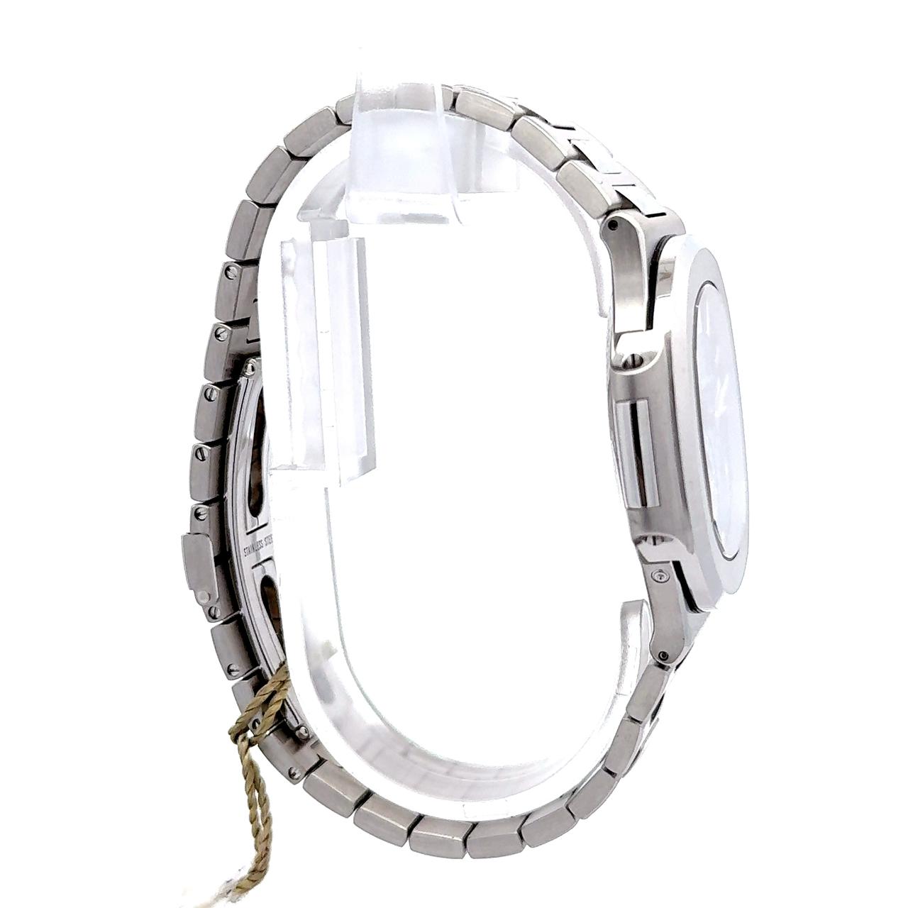 Patek Philippe Nautilus 5712/1A-001 crafted in stainless steel, it features the signature Nautilus porthole-shaped case with a horizontally embossed black-blue dial. The dial is adorned with luminescent hour markers and hands, ensuring readability in low-light conditions. This model boasts a unique asymmetric dial layout, featuring a power reserve indicator at 10 o’clock, a moon phase and date subdial at 7 o’clock, and a small seconds counter at 4 o’clock. Powered by the self-winding Caliber 240 PS IRM C LU movement, the watch offers an impressive level of mechanical refinement, visible through the sapphire crystal case back. Complemented by an integrated stainless steel bracelet with a fold-over clasp, the Patek Philippe Nautilus 5712/1A-001 is a perfect blend of sportiness and sophistication, making it a timeless piece for collectors and enthusiasts alike.