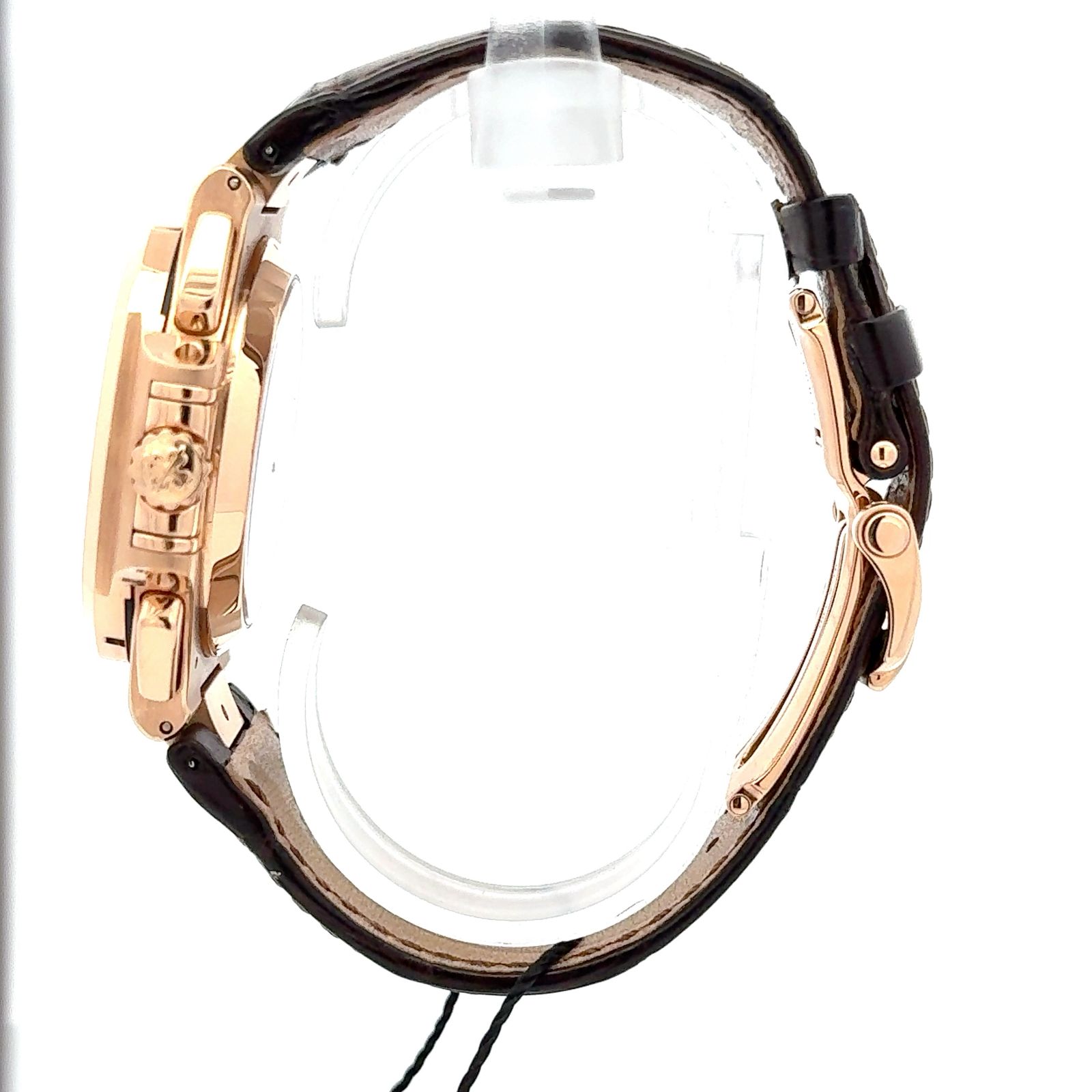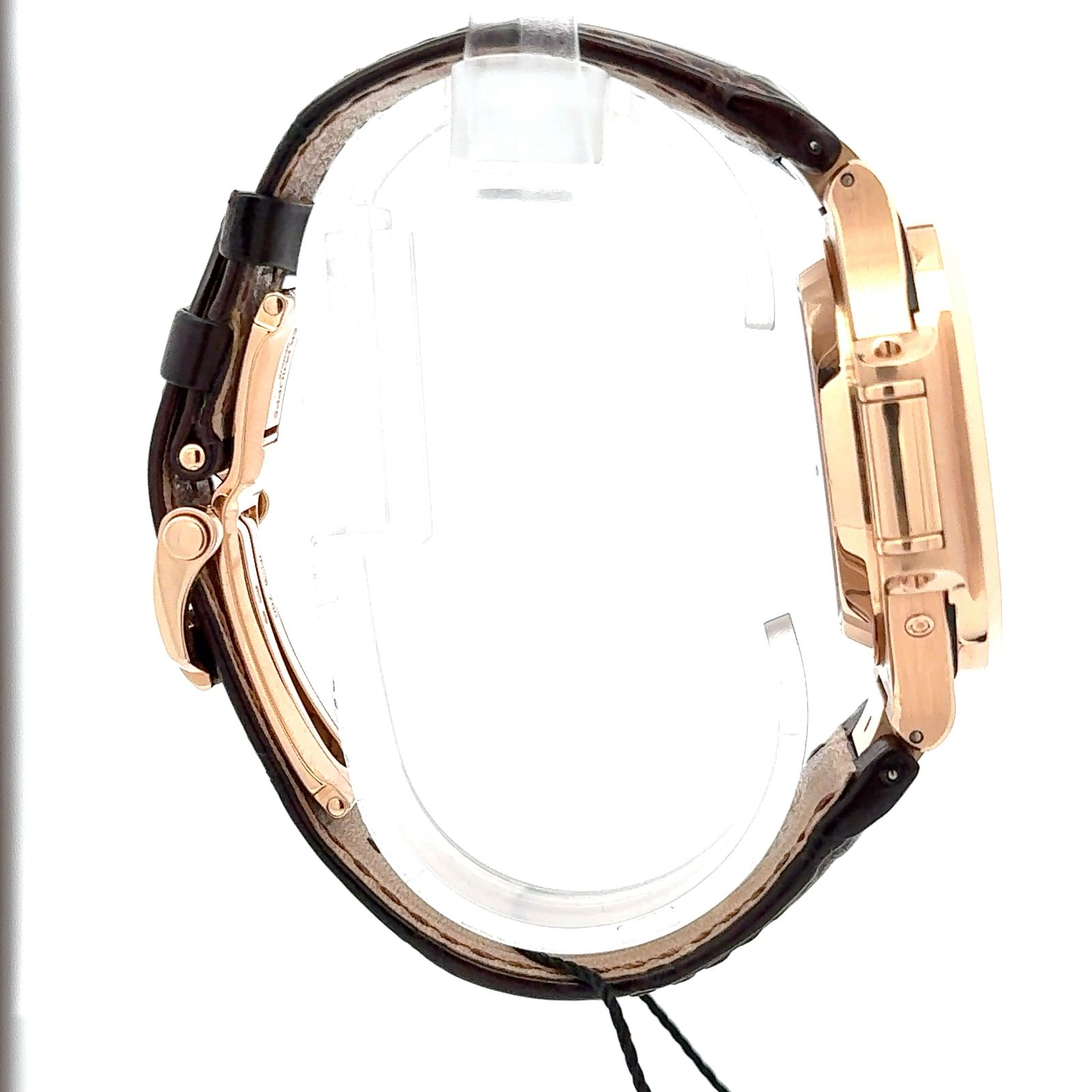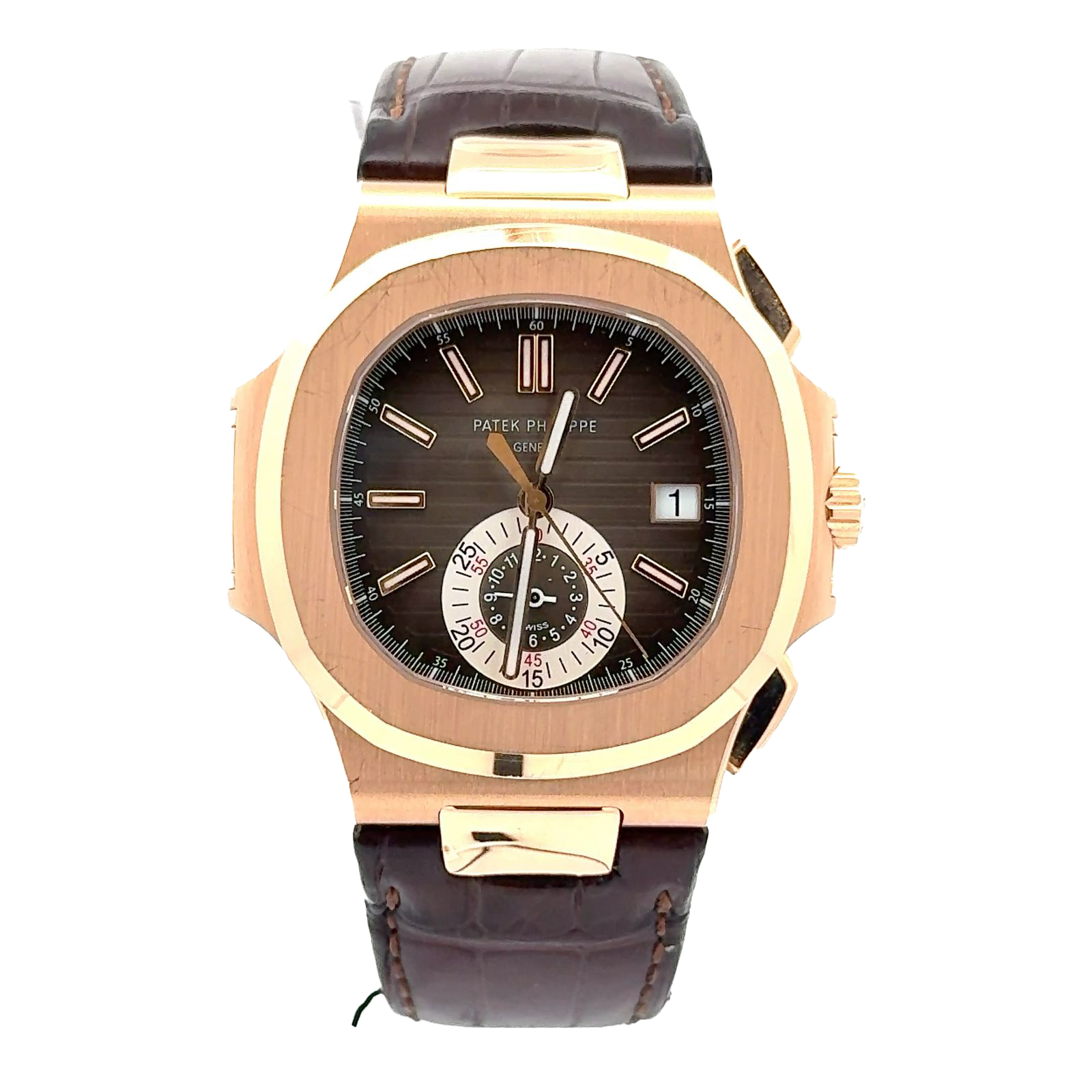 Patek Philippe Nautilus 5980R-001 is a masterclass in elegant sports watch design, combining technical excellence with refined aesthetics. As part of the iconic Nautilus collection, this model reflects Patek Philippe’s dedication to timeless style and precision craftsmanship. This automatic chronograph watch features the CH 28-520 C caliber, offering a robust 55-hour power reserve and 35 jewels to ensure high-performance movement. The 5980R-001 is encased in rose gold, measuring 40.5 mm in diameter, and features a matching rose gold bezel, giving the timepiece a luxurious and cohesive appearance. The brown dial is elegantly understated with no numerals, maintaining a sleek and minimalist design. A sapphire crystal protects the dial, providing clarity and resistance against scratches, while the case is rated water-resistant up to 10 ATM (100 meters) — suitable for daily wear and light aquatic activities. This model is paired with a brown leather strap, adding warmth and sophistication, and is secured with a fold clasp crafted from rose gold, offering both comfort and style. The watch includes chronograph and date functions, enhancing its functionality without compromising on design.