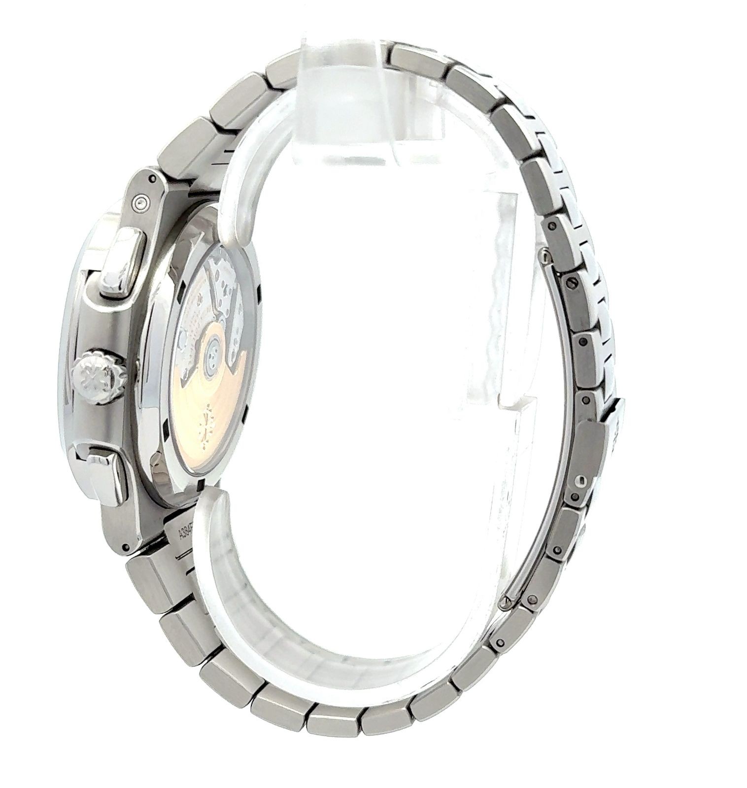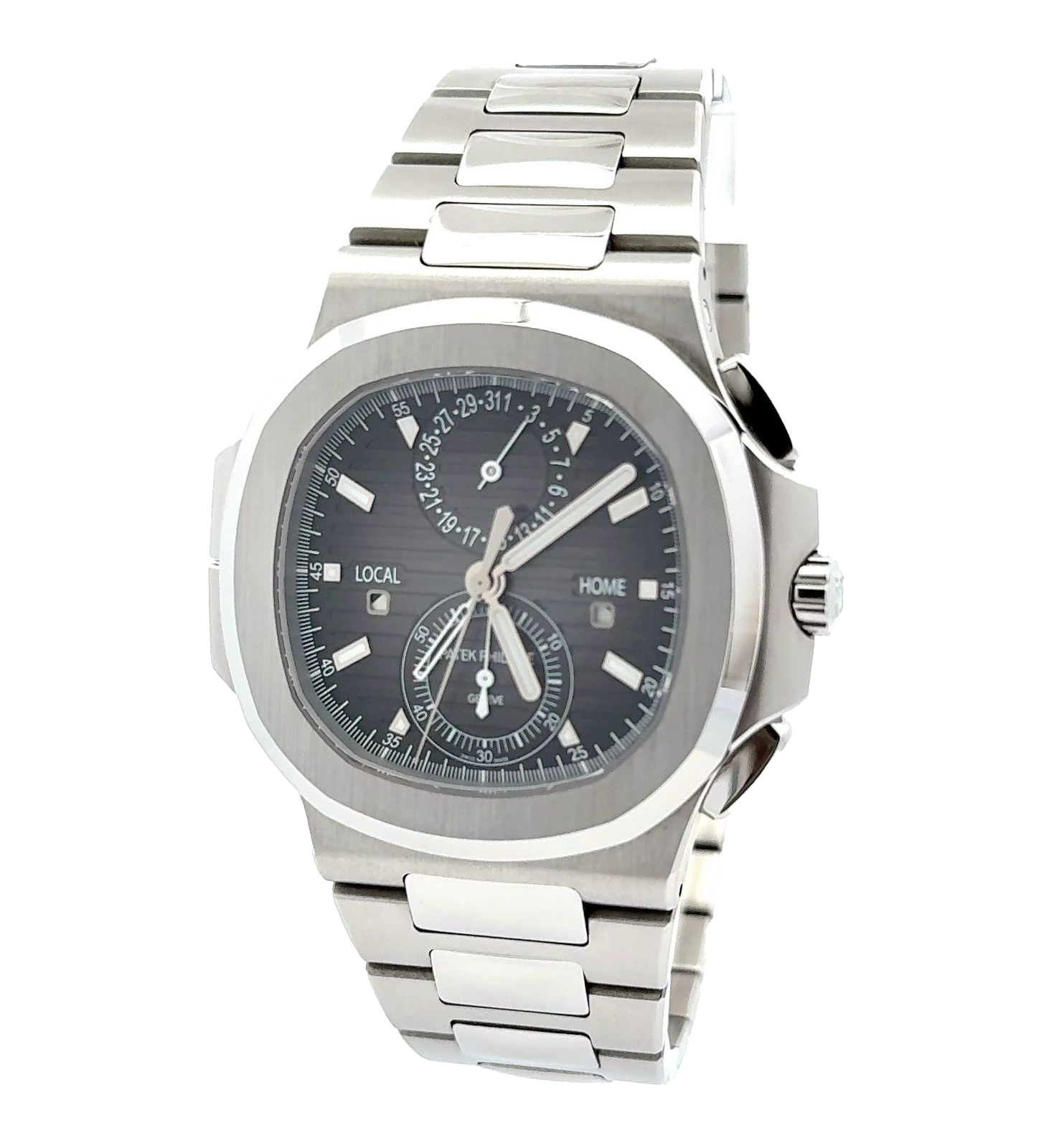 Patek Philippe Nautilus 5990/1A-001 is a masterful luxury timepiece, featuring a 40.5mm stainless steel case with polished and brushed finishes, a matching steel bezel and integrated steel bracelet, and a sophisticated grey dial under scratch-resistant sapphire crystal with luminous hands and hour markers; powered by the CH 28-520 C FUS automatic movement with 34 jewels, column-wheel chronograph, flyback function, and a 55-hour power reserve, it offers 10 ATM water resistance and a fold-over steel clasp, combining precision, durability, technical innovation, and iconic Nautilus design in a single, elegant wristwatch.