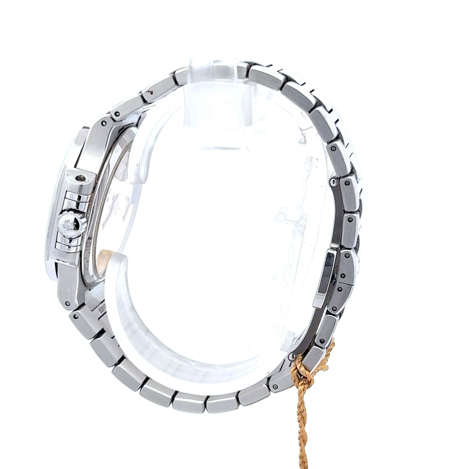 Patek Philippe Nautilus 7018/1A-001 is a luxurious ladies' automatic watch crafted from stainless steel, featuring a distinctive silvery white dial and a dazzling diamond-set bezel. This model, part of the iconic Nautilus collection, boasts a 33.60mm stainless steel irregular case with a screw-down crown and a fixed bezel adorned with 50 round brilliant diamonds totaling approximately 0.753 carats. The silver dial is accentuated by luminous hands and index hour markers, with a date display conveniently located at the 6 o'clock position, all protected by scratch-resistant sapphire crystal. Powering this elegant timepiece is an automatic movement, and it is secured to the wrist with a stainless steel bracelet featuring a folding clasp.