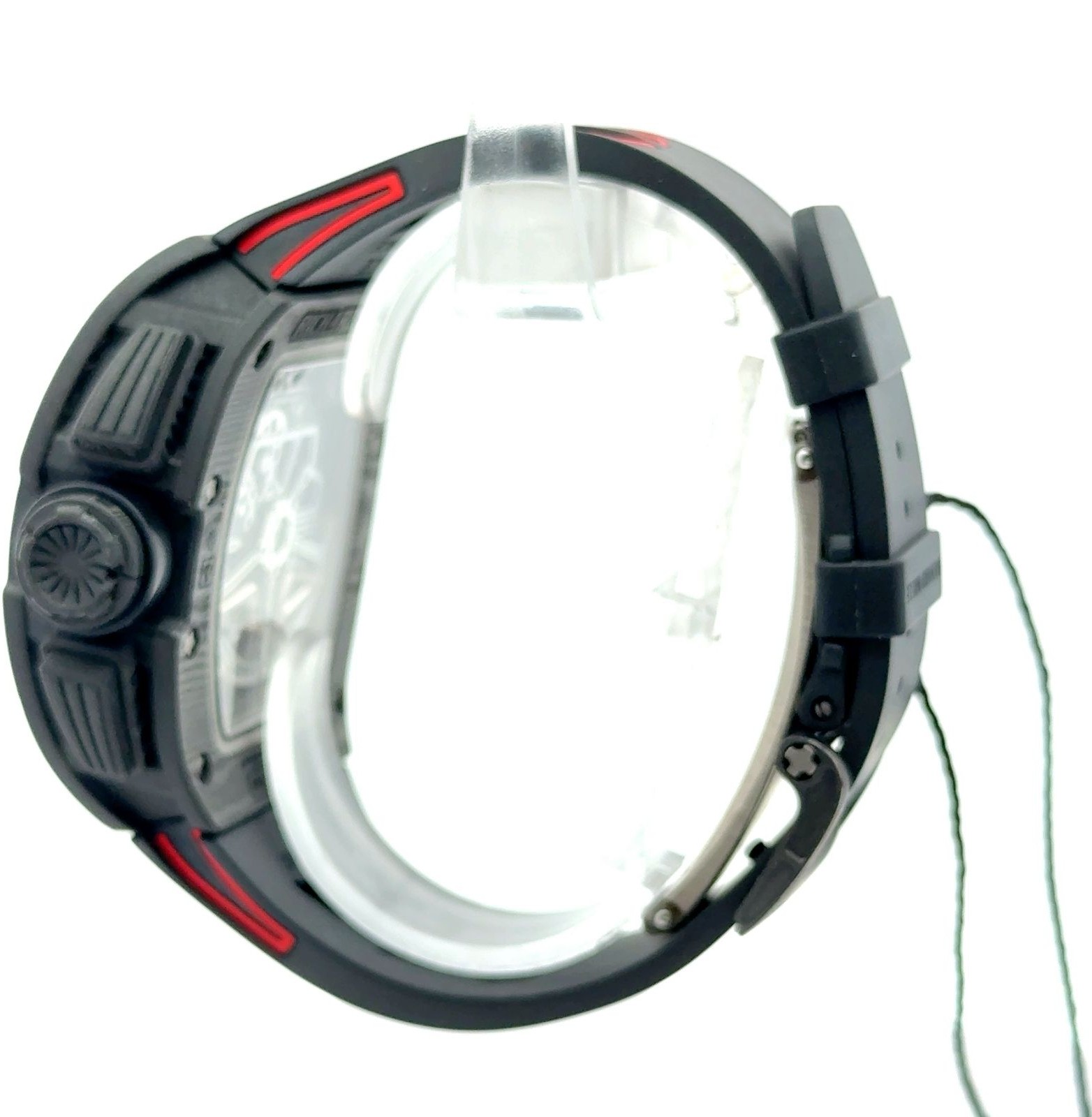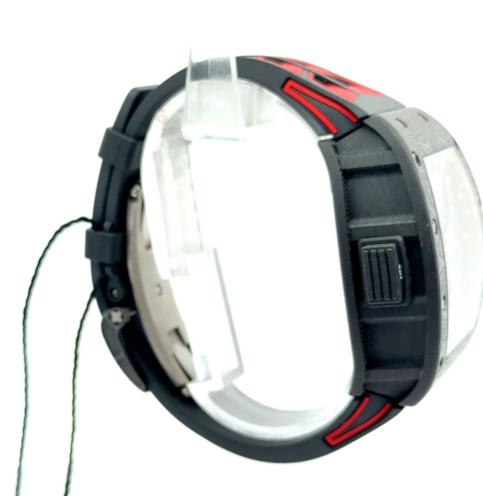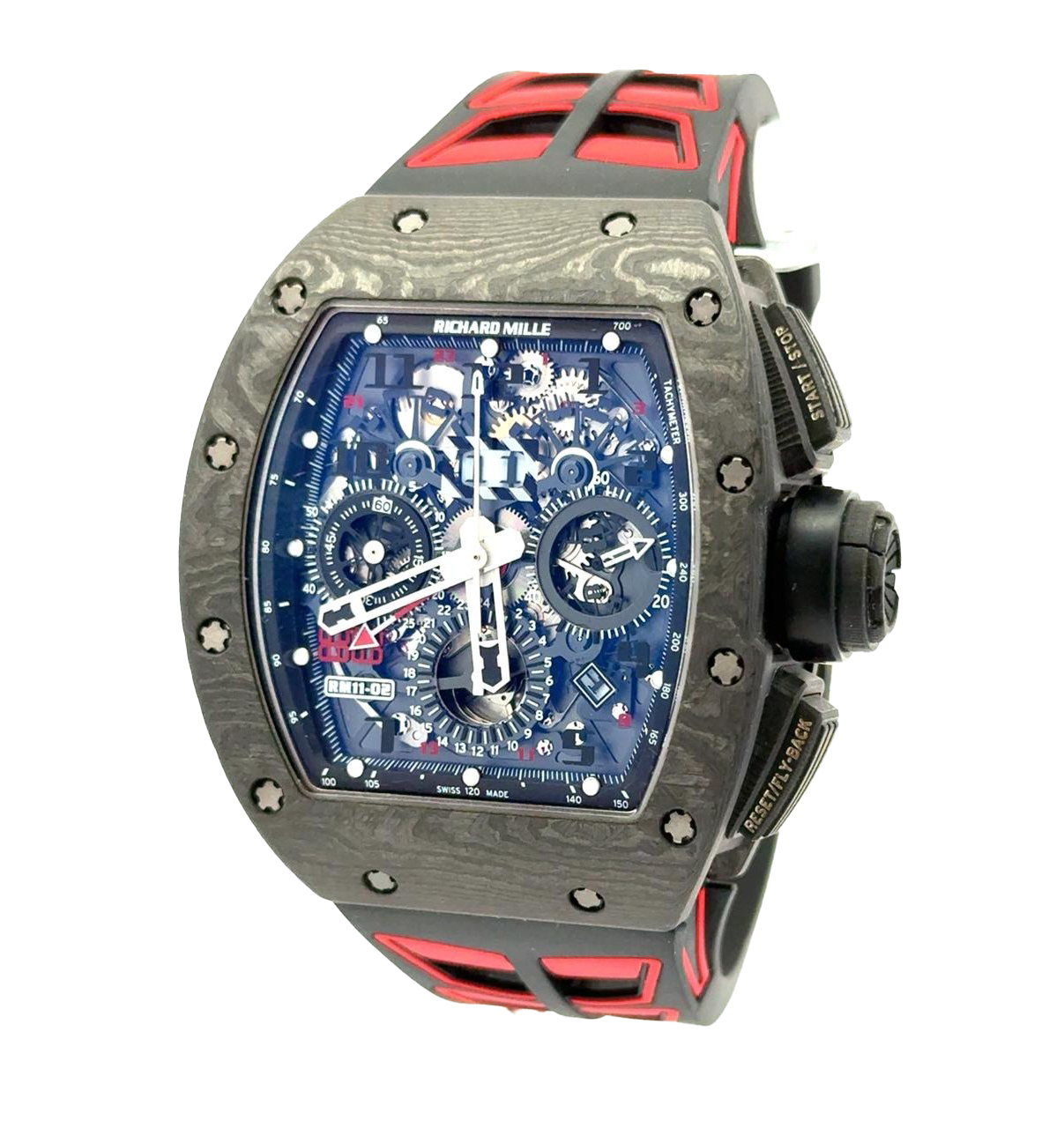 Richard Mille RM 11-02 “Americas Edition” is a bold, ultra-limited interpretation of the brand’s iconic travel chronograph, crafted in Carbon TPT and restricted to just 88 pieces. This edition elevates the RM 11-02’s technical prowess with a jet-black Carbon TPT case, measuring 50 x 42.7 mm and 16.2 mm thick, offering exceptional durability and a striking matte texture. The skeletonized dial reveals the Calibre RMAC2, a self-winding movement equipped with a flyback chronograph, annual calendar with oversized date and a UTC function for dual time zone tracking—ideal for frequent travelers. The Super-LumiNova-filled GMT hand enhances legibility, while the countdown and chronograph counters at 9 and 6 o’clock add dynamic utility. Water-resistant to 50 meters.