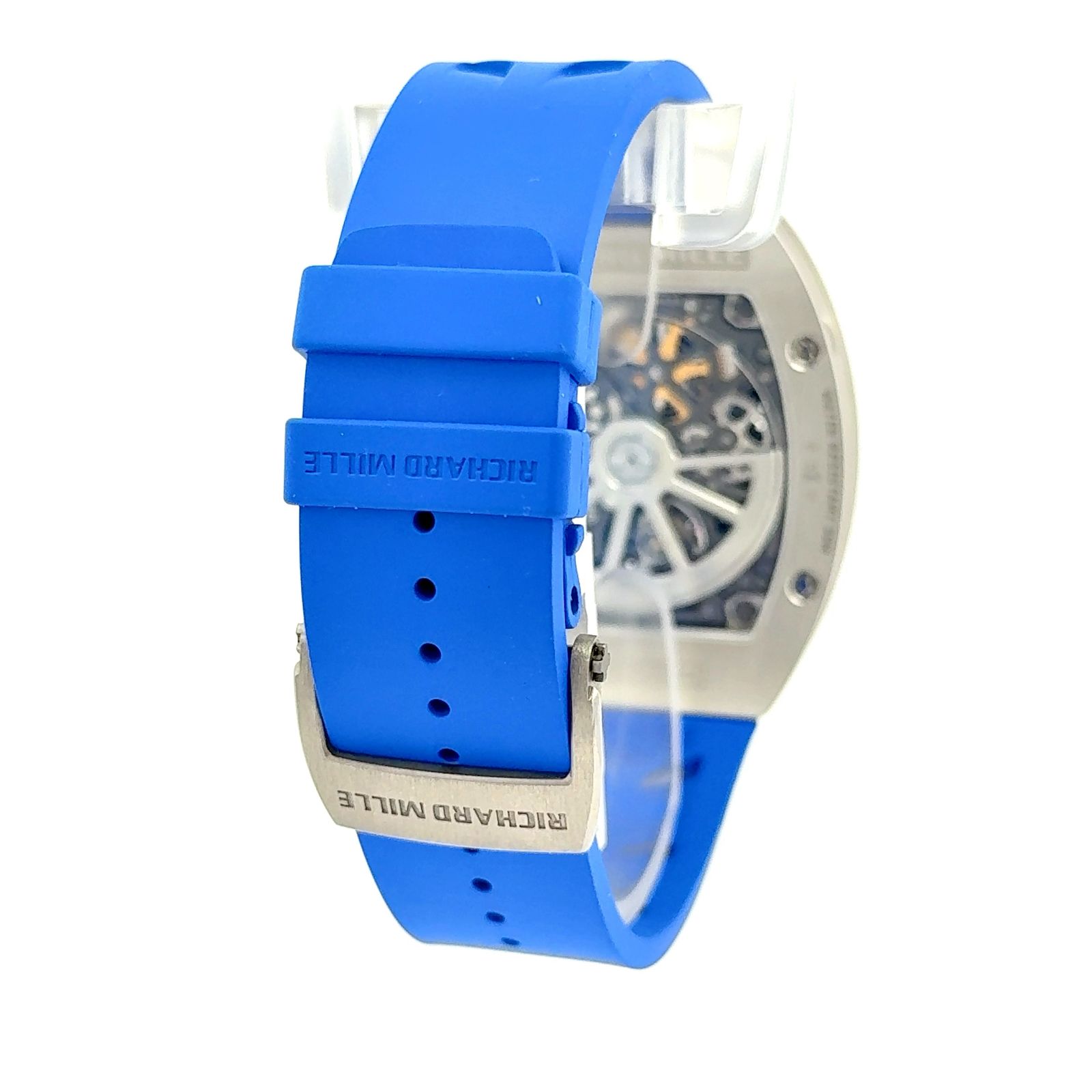 Richard Mille RM67-01 in Platinum is a masterclass in ultra-thin haute horlogerie, combining sleek engineering with the unmistakable boldness of the Richard Mille aesthetic. Crafted from luxurious solid platinum, the case retains the brand’s iconic tonneau shape, offering both visual impact and exceptional durability. Despite the precious metal construction, the watch maintains an impressively slim profile at just 7.75 mm thick, thanks to the ultra-thin automatic calibre CRMA6. This skeletonized movement, visible through the sapphire crystal dial and caseback, showcases exquisite architectural detailing with microblasted grade-5 titanium bridges and a 50-hour power reserve. The dial features luminous Arabic numerals suspended above the movement, along with a unique function selector (H-W-D) that allows the crown to alternate between hand-setting, winding, and date adjustment. Paired with a comfortable rubber strap, the RM67-01 in platinum blends refined sophistication with a modern, technical edge making it a highly coveted piece for collectors who value both exclusivity and performance.