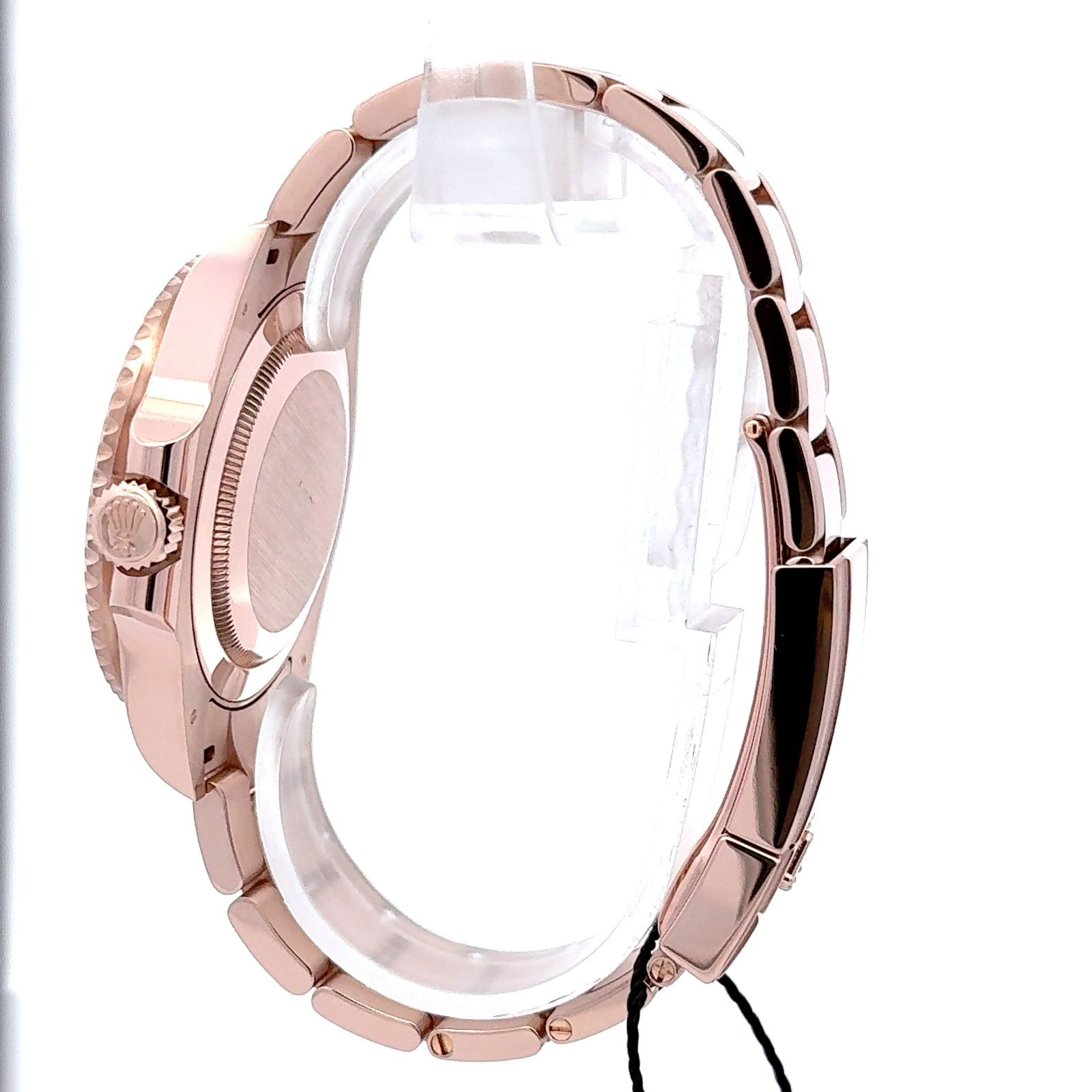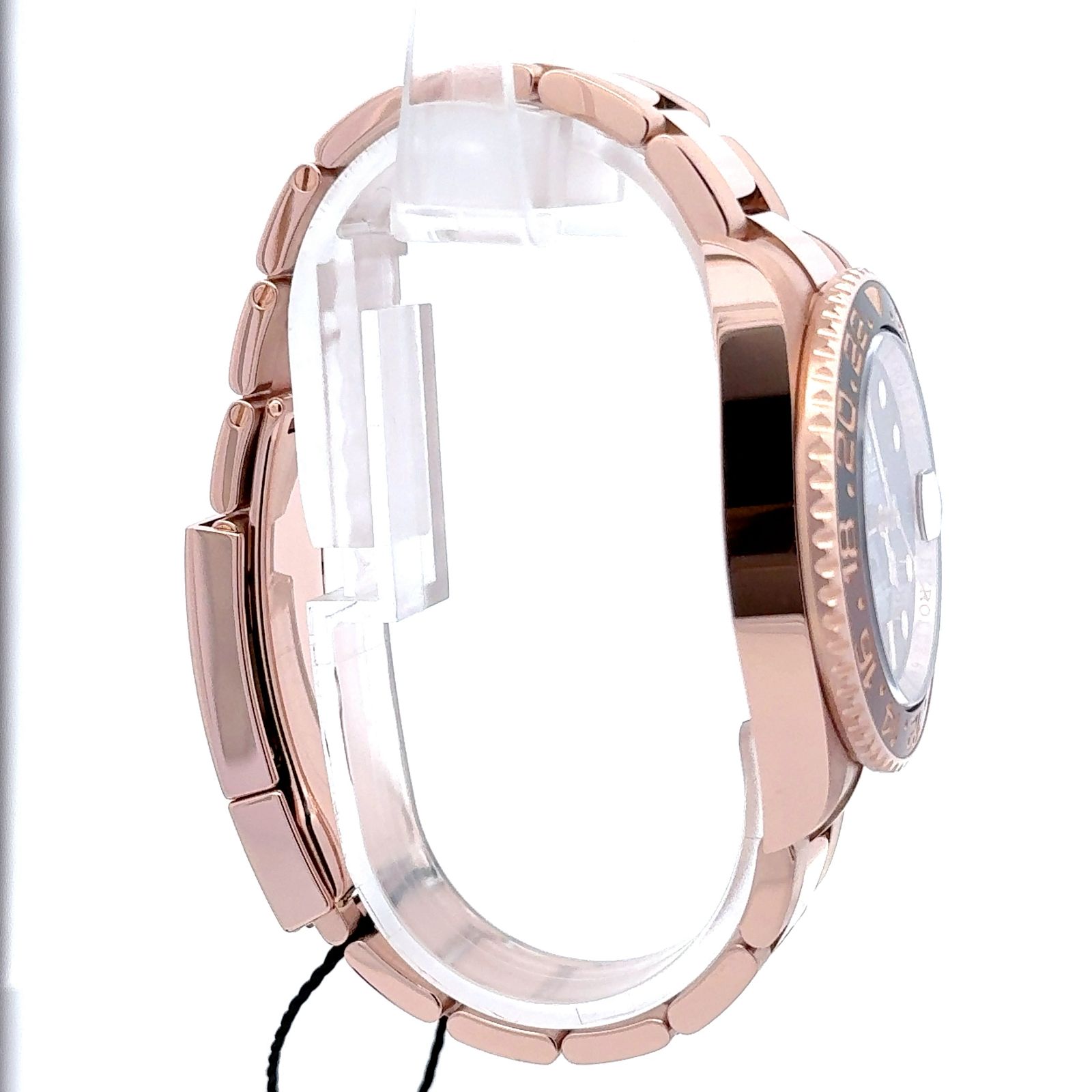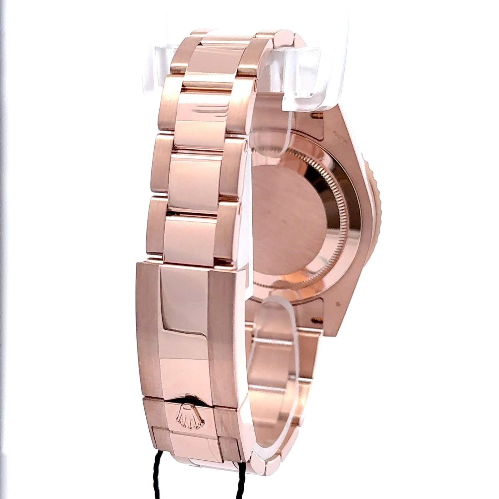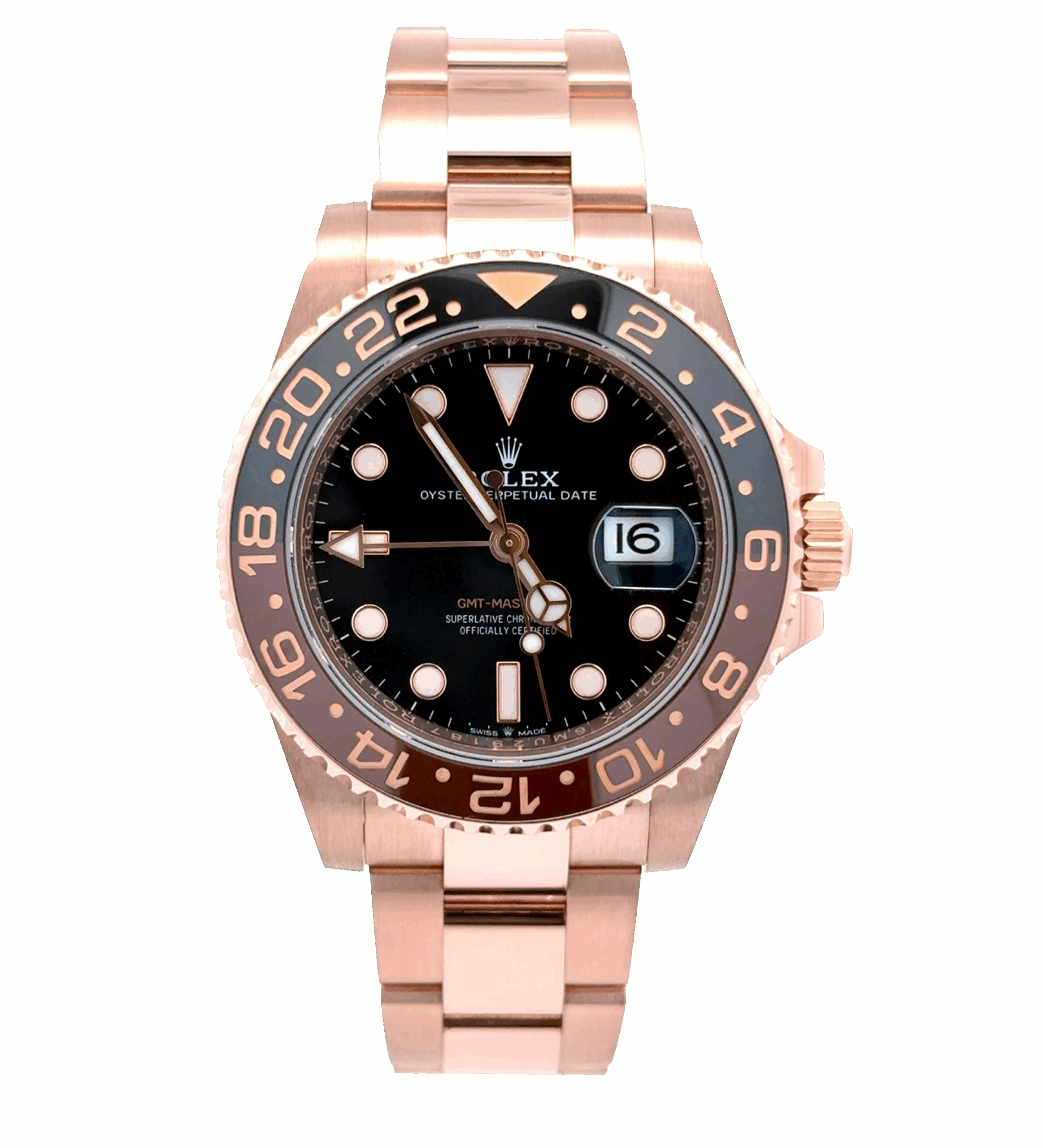 Rolex GMT-Master II reference 126715CHNR, commonly known as the "Root Beer," is a luxurious timepiece crafted from Everose gold, Rolex's proprietary rose gold alloy. It features a 40mm case, a distinctive black and brown Cerachrom bezel, and a black dial adorned with rose gold accents, complementing the Everose gold Oyster bracelet. Powered by the automatic Caliber 3285, this model offers dual time zone functionality with a 24-hour GMT hand, independent hour adjustment, and a 70-hour power reserve, making it both elegant and highly functional. The watch also includes a scratch-resistant sapphire crystal and is water-resistant up to 100 meters, ensuring durability and reliability.