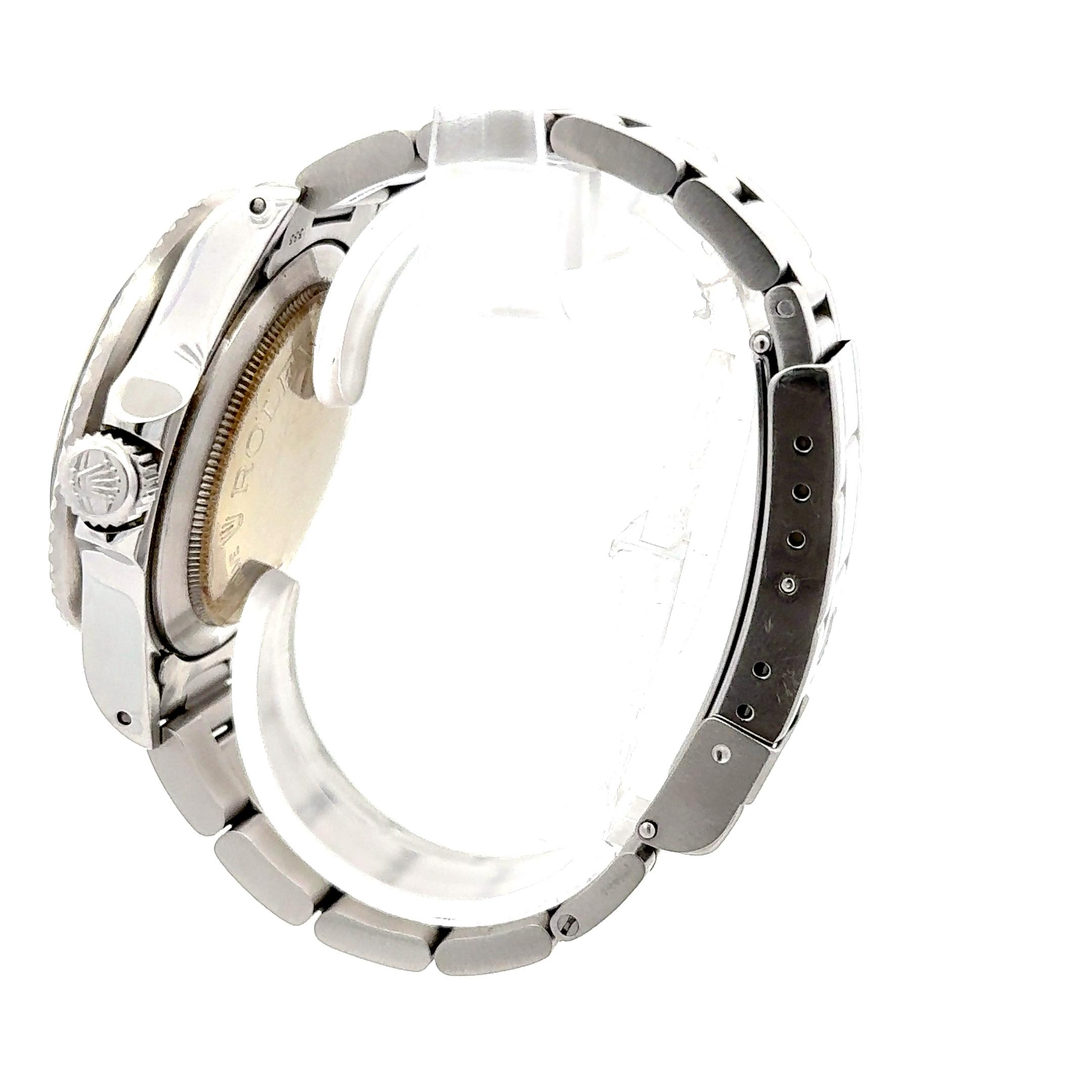 Rolex Sea-Dweller reference 1665 housed in a robust 40mm stainless steel case with a pronounced domed acrylic crystal and was rated for an impressive 2000 feet (610 meters) of water resistance, significantly exceeding the Submariner’s capabilities at the time. Powered by the automatic Caliber 1570, the watch features a date function at 3 o’clock (without a Cyclops lens) and operates at a frequency of 19,800 vph with a power reserve of around 48 hours. The case includes the signature helium escape valve and is paired with a classic bi-directional bezel with an aluminum insert. Its bold case profile, thick case back, and professional diving specifications have made it a legend among Rolex tool watches.